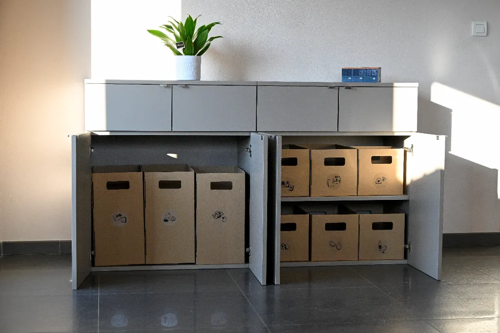 Se glisse sous un plan de travail H = 680 mm Jusqu’à 7 déchets triés